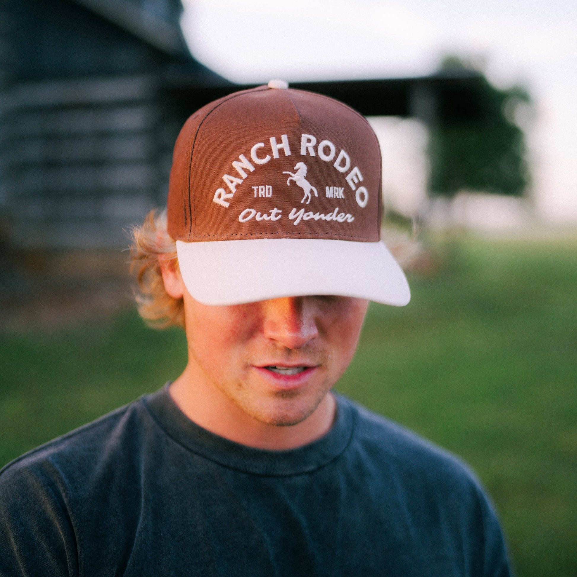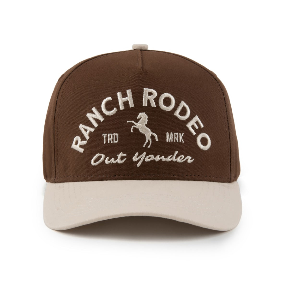A nod to the dust, grit, and glory of small-town rodeos. The Ranch Bronc Snapback features a bold arched graphic, stitched up on a durable 5-panel canvas build.